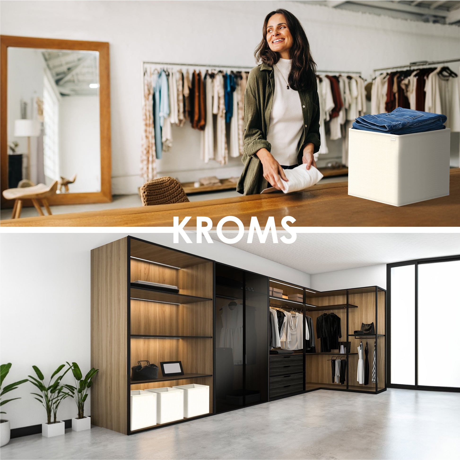 Die größte KROMS Aufbewahrungsbox mit den Maßen 37 x 32 x 32 cm bietet maximalen Stauraum für sperrige Gegenstände wie Wintermäntel, Decken oder dicke Pullover. Ihre robuste Konstruktion und das moderne Design machen sie nicht nur praktisch, sondern auch zu einem stilvollen Blickfang in Ihrem Kleiderschrank oder Abstellraum.