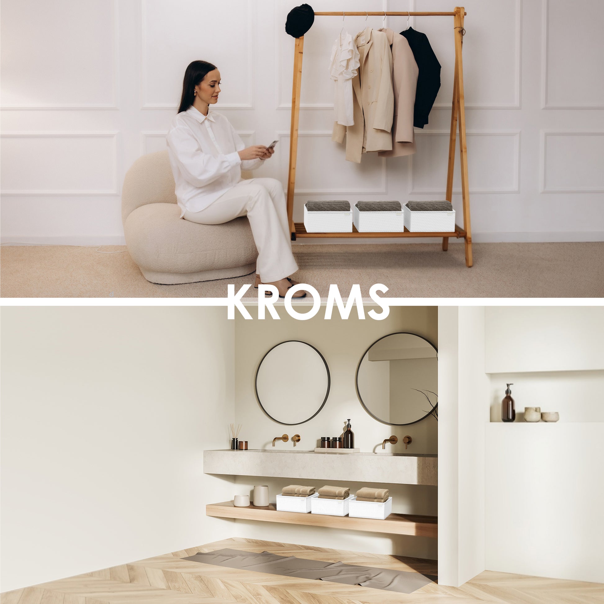 Diese mittelgroßen KROMS Aufbewahrungsboxen ( 28 x 28 x 13 cm) eignen sich perfekt zur ordentlichen Aufbewahrung von Hoodies, Pullovern oder Strickjacken. Die Höhe ist ideal, um Kleidung knitterfrei zu glätten, und das schlichte Design passt in jeden Kleiderschrank.