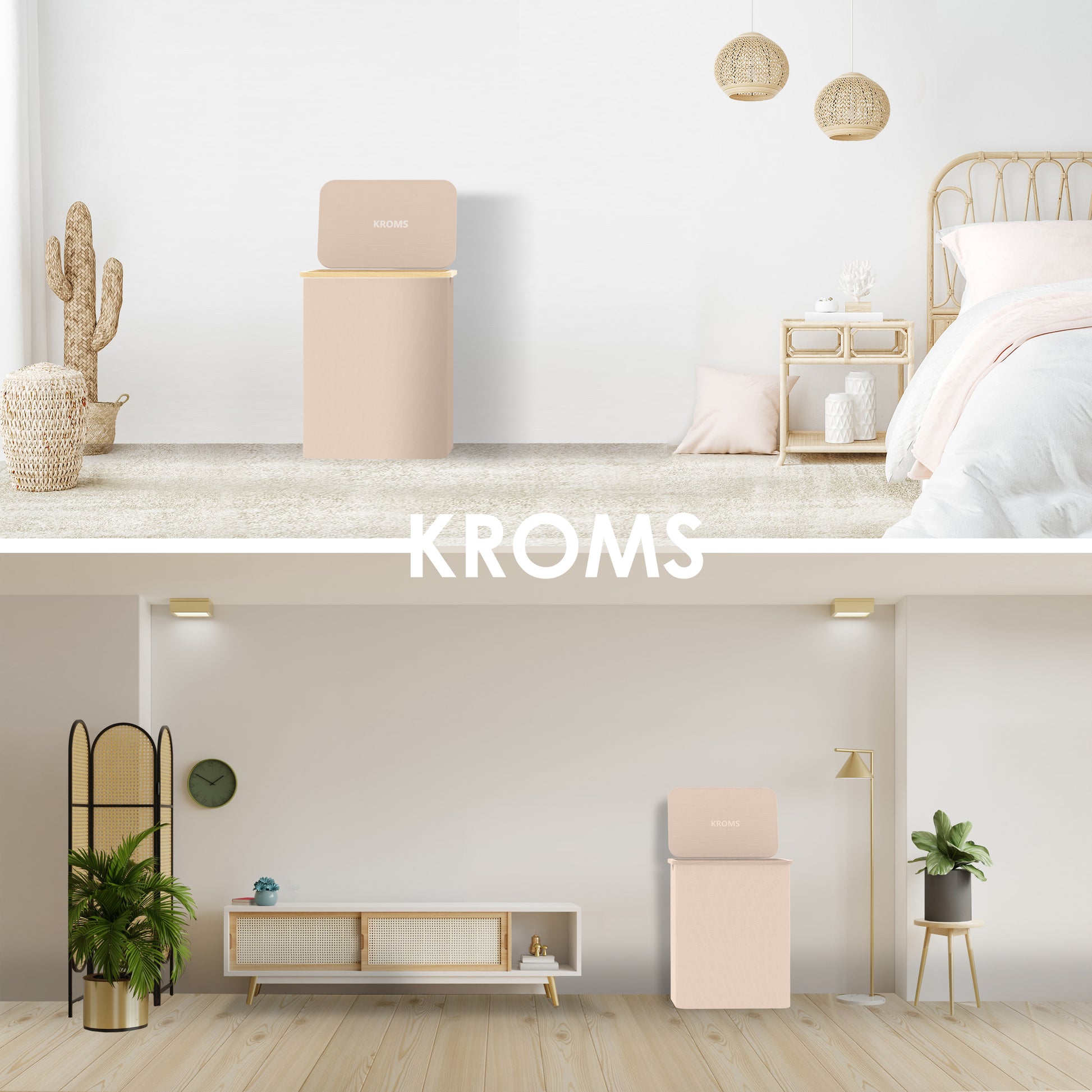 Der Wäschekorb von KROMS verfügt mit seinen drei geräumigen Innentaschen über ein Gesamtvolumen von 145 Litern. Die drei Beutel sind mit Beschriftungen versehen: weiße, schwarze und bunte Wäsche. Dank des Klettverschlusssystems können Sie diese Taschen ganz einfach anbringen oder abnehmen. Ist die Tüte voll? Anschließend vom Klettverschluss lösen und die Tasche bequem entnehmen. Das Waschen kann beginnen!