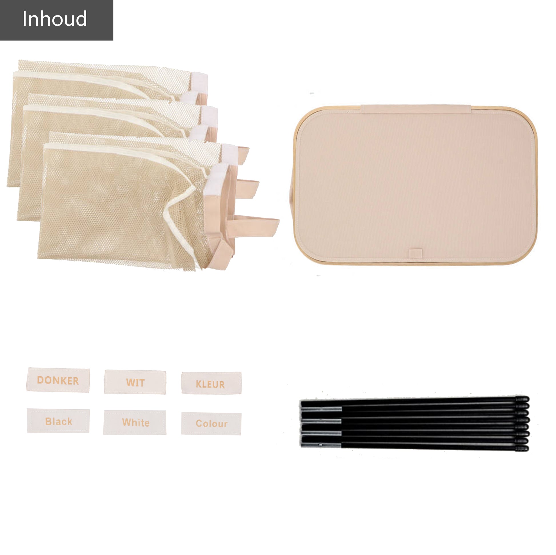 Der Wäschekorb ist vollständig zusammenklappbar und kann ganz flach zusammengeklappt werden, was ihn zur idealen Wahl macht, um in kleineren Waschküchen Platz zu sparen. Mithilfe der vier Haltestangen, die Sie einfach anbringen oder entfernen können, können Sie den Wäschekorb ganz einfach auf- und abbauen. Sobald die Stützstangen aus den Ecken entfernt sind und Sie die Wäschesäcke entfernt haben, können Sie den Wäschekorb zum Aufbewahren oder Mitnehmen einfach zusammenfalten!