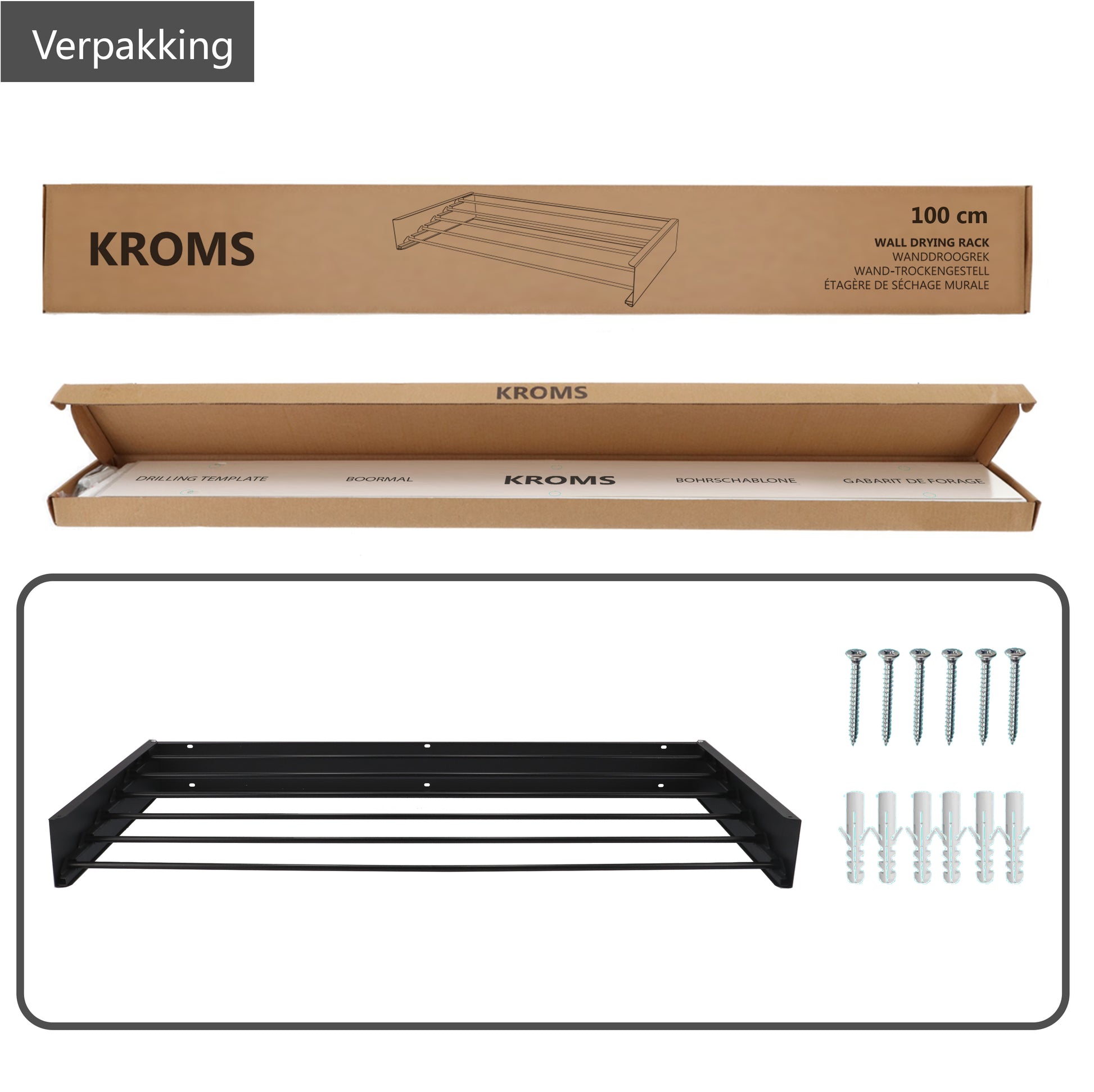 En plus d'être très pratique, l'étendoir mural KROMS possède également un design élégant. Nous sommes le seul partenaire sur Bol.com à proposer ce porte-bagages entièrement noir ! Il s'intègre dans presque tous les intérieurs et tous les espaces. Installez l'étendoir mural dans votre salle de bain, votre couloir, votre buanderie, votre salon, etc.