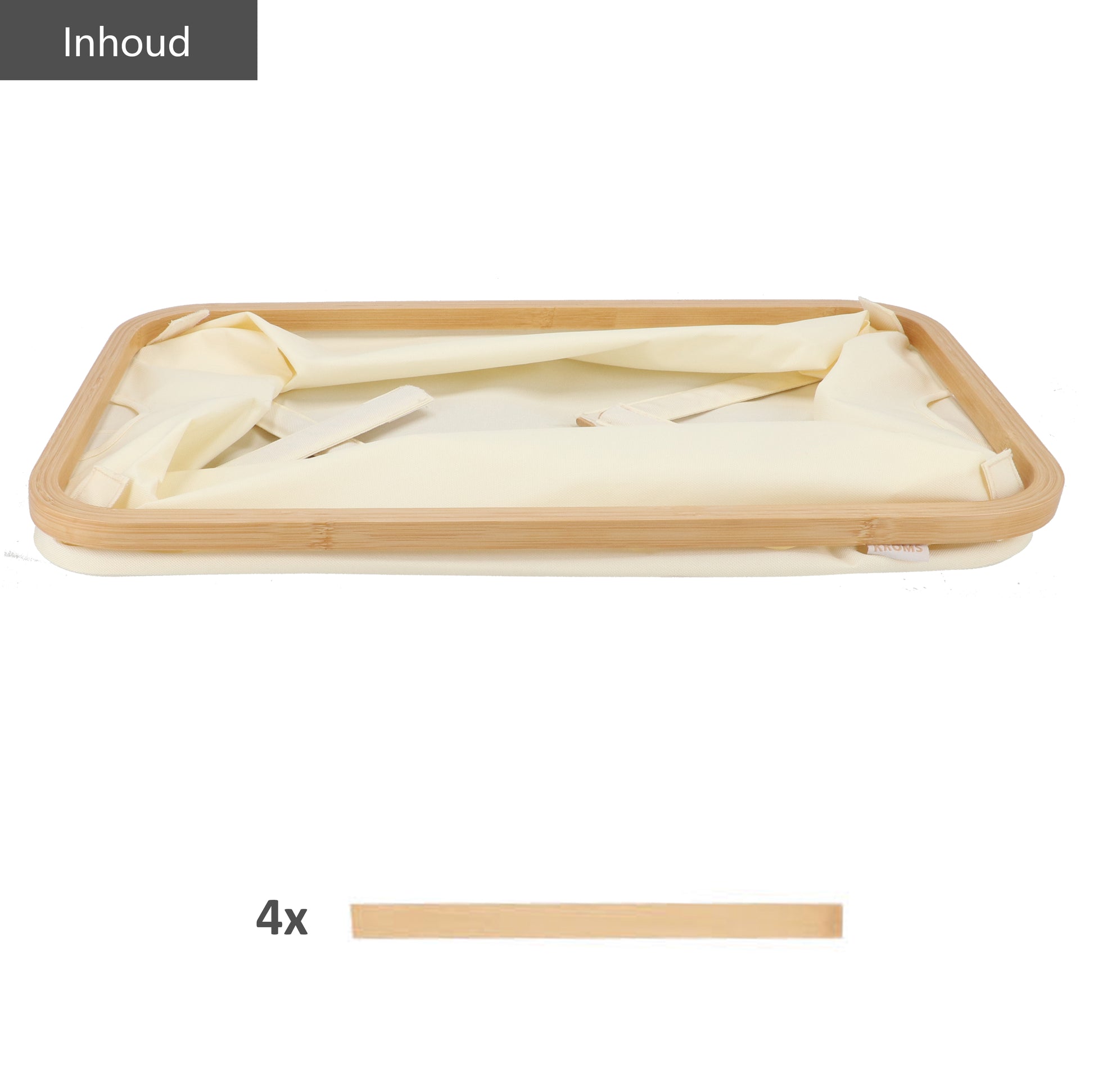 De mand is gemaakt van duurzaam bamboe en sterk katoen. Hierdoor is hij lichtgewicht, maar toch stevig en stabiel in gebruik. De natuurlijke materialen en de warme zand kleur maken dat de mand in iedere ruimte mooi staat. Van wasruimte tot slaapkamer.